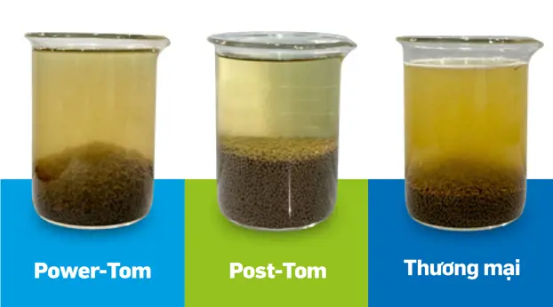 Đặc biệt, POST-TOM cho thấy sự vượt trội về độ đồng đều của các hạt thức ăn, cao hơn 6,2% so với Power-Tom và 2% so với sản phẩm trên thị trường. Một trong những yếu tố mang lại kết quả này là khả năng hạn chế thất thoát dinh dưỡng khi cho ăn. Với tính ổn định trong nước cao, POST-TOM đảm bảo giá trị dinh dưỡng được hấp thu tối đa giúp duy trì nguồn nước sạch trong ao nuôi.