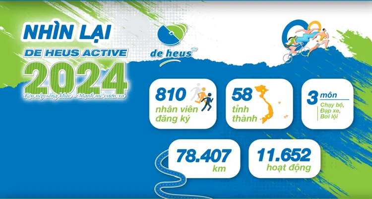 Từ ngày 29/03 đến ngày 21/04, De Heus đã tổ chức giải thể thao trực tuyến De Heus Active 2024, dành cho tất cả nhân viên toàn quốc. Qua đó, De Heus muốn mang lại cho toàn thể nhân viên một sân chơi thư giãn và vui vẻ, góp phần nâng cao ý thức rèn luyện nếp sống thể thao và tinh thần đoàn kết giữa các đồng nghiệp.