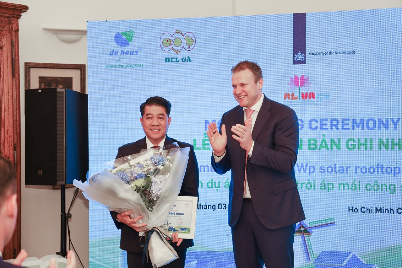 Với những hoài bão và cam kết về phát triển xanh và bền vững, De Heus và Bel Gà mong muốn triển khai năng lượng mặt trời tại toàn bộ địa điểm của cả 2 công ty. Do đó, De Heus và Bel Gà quyết định hợp tác cùng Green Roof, đơn vị sẽ đầu tư vào các hệ thống điện mặt trời áp mái, cũng như phụ trách cả việc vận hành và bảo trì các hệ thống này. Ông Daniel Stork, Tổng Lãnh sự Vương quốc Hà Lan và ông Nguyễn Đỗ Anh Tuấn, Giám đốc Vụ Hợp tác Quốc tế, Bộ Nông nghiệp & Phát triển Nông thôn cũng có mặt tại buổi lễ.
