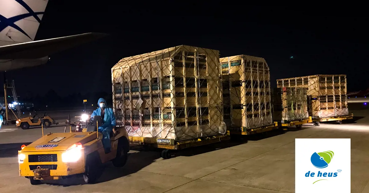 Khuya ngày 4/10/2021 vừa qua, chuyên cơ chở heo giống ông bà, cụ kị chất lượng cao được De Heus Genetics nhập khẩu từ đối tác Topigs Norsvin - Canada, chính thức hạ cánh an toàn tại cảng hàng không quốc tế Tân Sơn Nhất, TP. Hồ Chí Minh. Lô heo dự kiến sẽ được vận chuyển về trung tâm heo giống Gencen của De Heus tại Bắc Tân Uyên, Bình Dương và Tổ Hợp Khu Nông Nghiệp Ứng Dụng Công Nghệ Cao DHN ở Đắk Lắk.