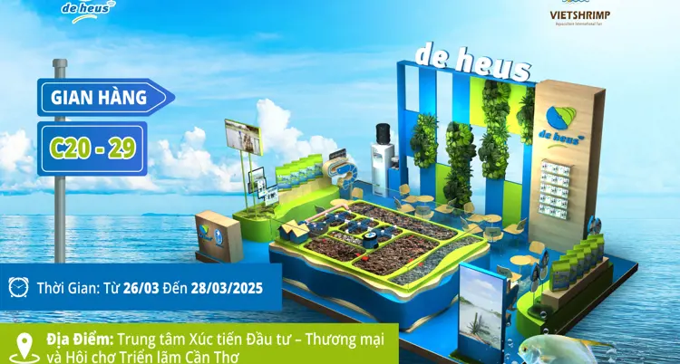 De Heus sẽ chính thức có mặt tại Triển lãm Quốc tế Công nghệ ngành tôm Việt Nam lần thứ 6 – VietShrimp 2025, với chủ đề "Xanh hóa vùng nuôi”, diễn ra từ ngày 26 đến hết ngày 28/3/2025 tại Cần Thơ. Đây là sự kiện hàng đầu dành riêng cho ngành tôm Việt Nam, quy tụ hơn 200 gian hàng đến từ các doanh nghiệp trong và ngoài nước, cùng chuỗi hội thảo chuyên sâu nhằm thúc đẩy sự phát triển bền vững của ngành thủy sản.