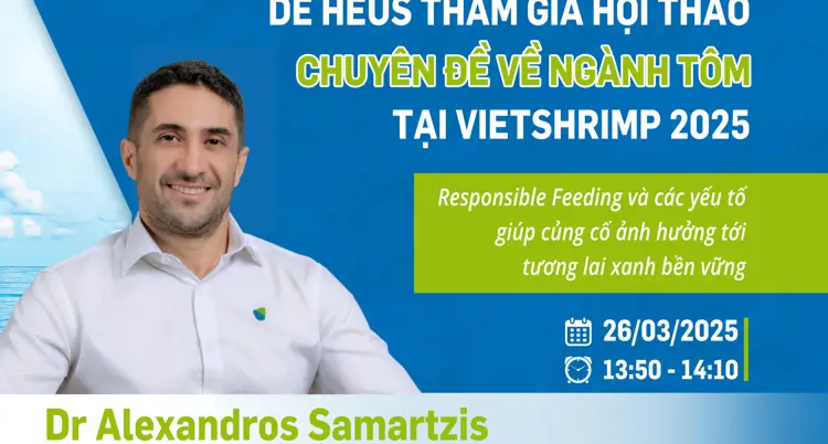 Vào lúc 13:50 - 14:10 ngày 26/03, trong khuôn khổ triển lãm VietShrimp 2025, De Heus sẽ tham gia hội thảo với chuyên đề “Responsible Feeding và các yếu tố giúp củng cố việc ảnh hưởng tới tương lai xanh bền vững.”