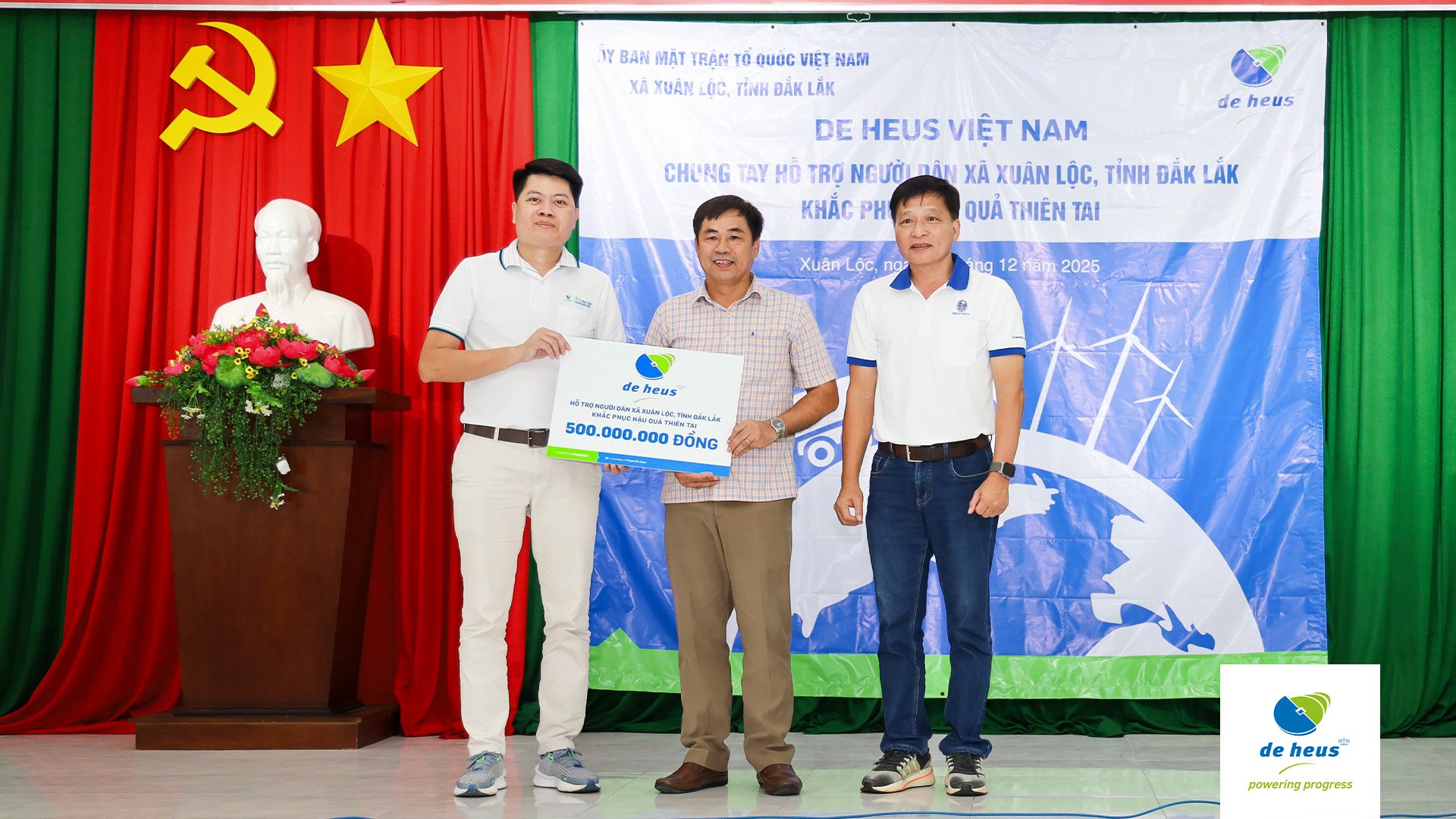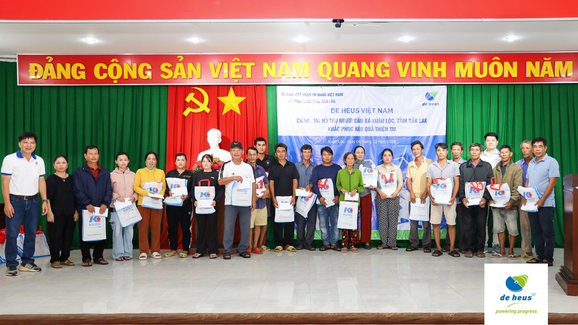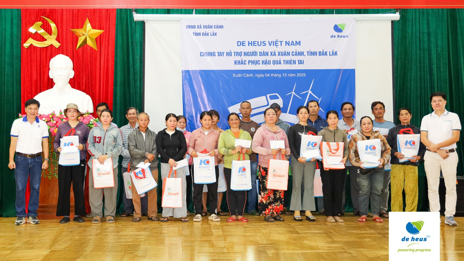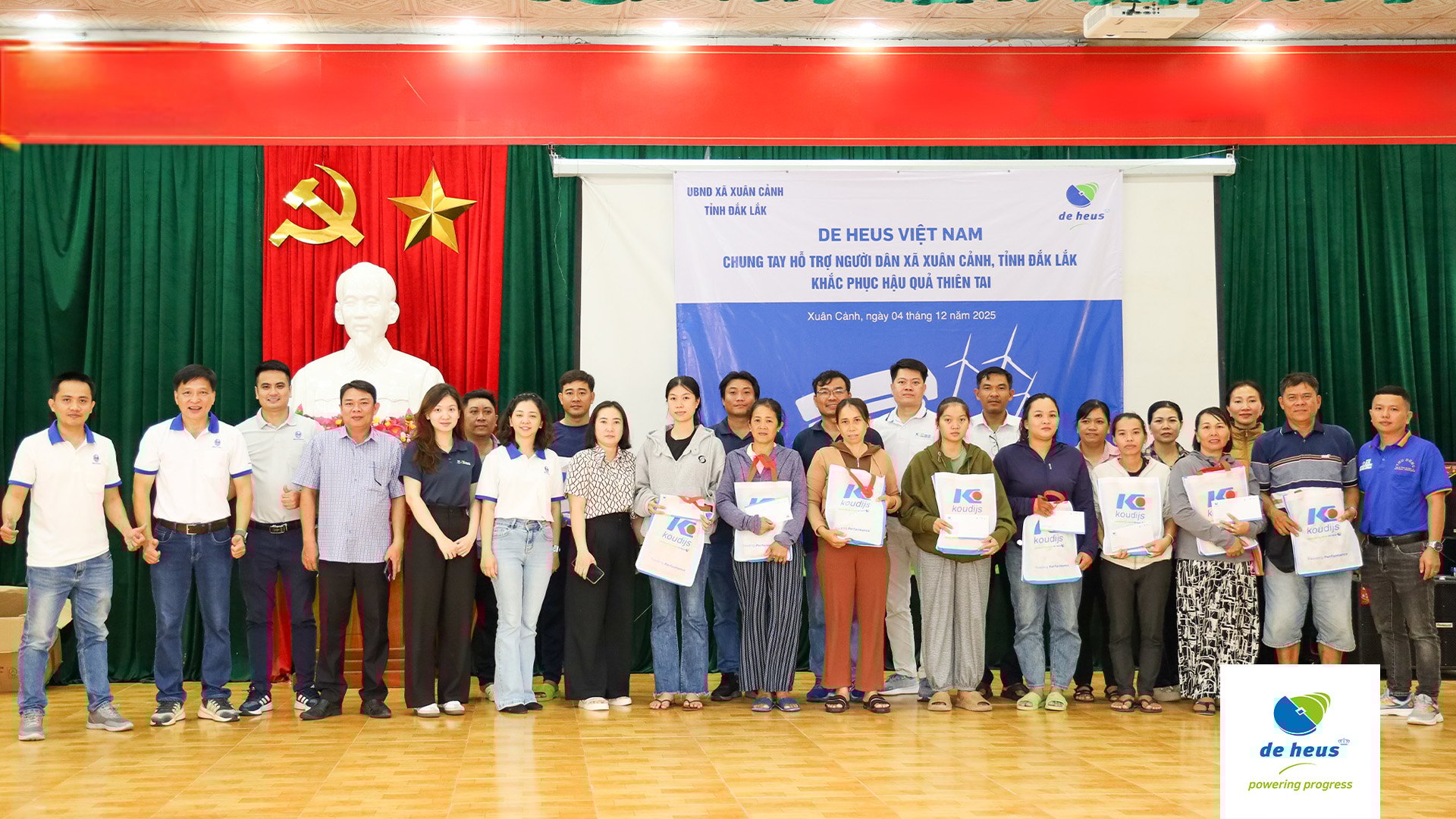 Nối tiếp hành trình sẻ chia cùng miền Trung yêu thương, vào ngày 4/12, Đại diện Công ty De Heus đã đến thăm và trao tận tay số tiền 1 tỷ đồng kèm những phần quà ý nghĩa cho bà con tại xã Xuân Lộc và xã Xuân Cảnh, tỉnh Đắk Lắk (Phú Yên cũ).