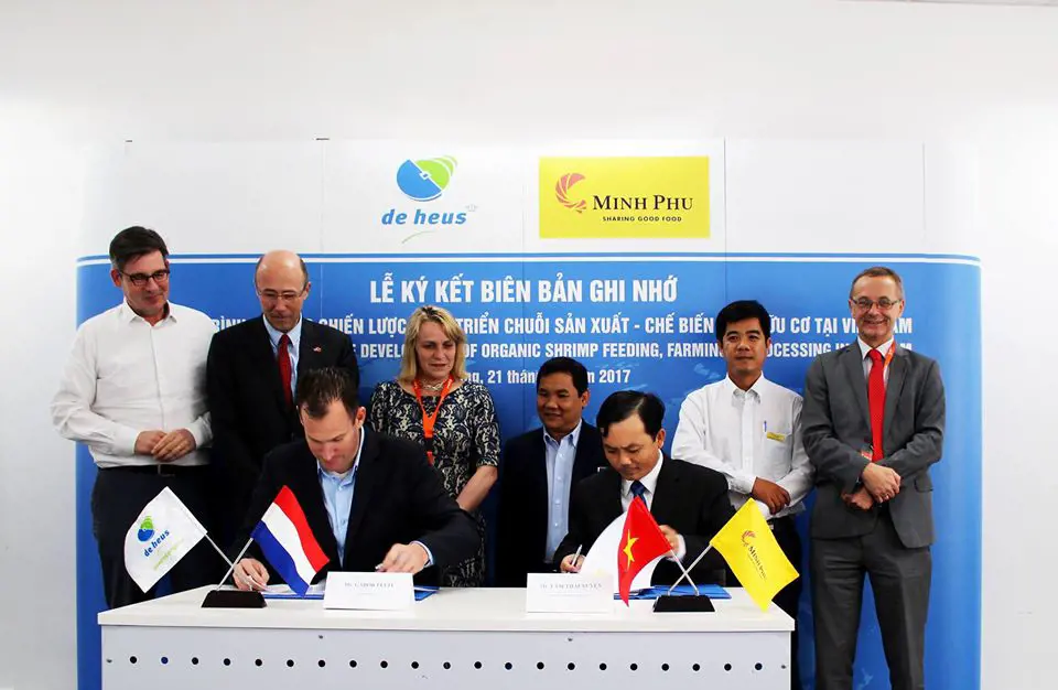 Ngày 21/3/2017, De Heus và Minh Phú ký kết thỏa thuận hợp tác “Chiến lược phát triển Chuỗi Sản xuất – Chế biến Tôm Hữu Cơ” dưới sự chứng kiến của bà Marjolijin Sonnema, Thứ trưởng phụ trách nông nghiệp của Bộ Kinh tế Hà Lan, cùng đại diện Lãnh Sự Quán và Đại Sứ Quán Hà Lan tại Việt Nam.