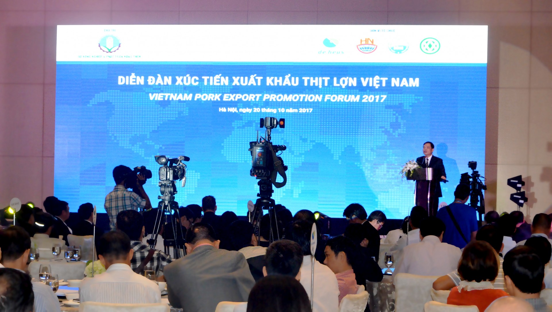 Ngày 20.10.2017, tại Khách sạn JW Marriott (Hà Nội), Bộ NN-PTNT đã tổ chức “Diễn đàn xúc tiến xuất khẩu thịt lợn Việt Nam” dưới sự chủ trì của Phó Thủ tướng Trịnh Đình Dũng và Bộ trưởng Bộ NN-PTNT Nguyễn Xuân Cường. Diễn đàn là cơ hội quý giá để các doanh nghiệp trong chuỗi giá trị sản xuất chăn nuôi, các đơn vị nhập khẩu nước ngoài, các bộ ngành liên quan có cơ hội cùng nhau đánh giá cơ hội, thảo luận các biện pháp xúc tiến phát triển sản xuất, mở rộng tiềm năng xuất khẩu thịt lợn.
