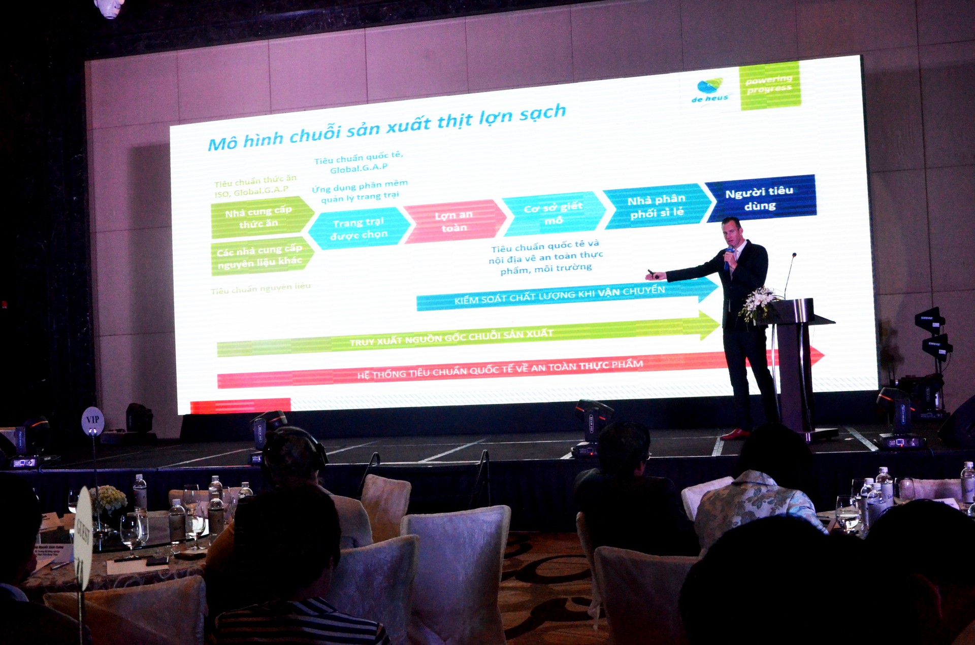 Tại diễn đàn, Ông Gabor Fluit - Tổng Giám đốc De Heus Châu Á đã chia sẻ về cơ hội xuất khẩu và cả những thách thức cho sản phẩm chăn nuôi, đặc biệt là thịt lợn,Việt Nam. Ông cũng chia sẻ về mô hình chuỗi liên kết của De Heus, kinh nghiệm tổ chức thành công chuỗi liên kết sản xuất thịt gia cầm xuất khẩu, cũng như những nỗ lực góp phần vào việc phát triển nguồn thực phẩm sạch và bền vững.