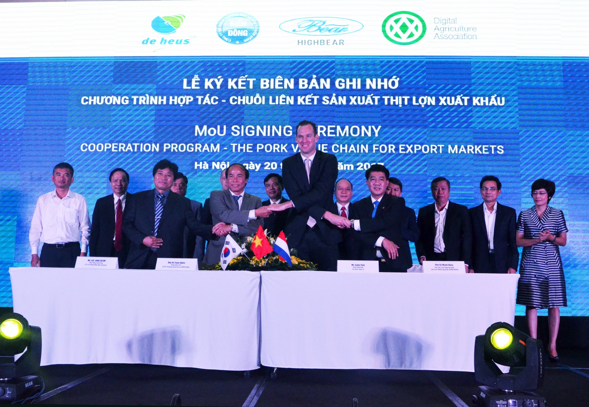 Trong dịp này, trước sự chứng kiến của lãnh đạo Chính phủ và Bộ NN-PTNT, Đại sứ quán Hà Lan, Phó Chủ tịch Uỷ ban nhân dân tỉnh Dak Lak, Phó Bí thư tỉnh Bình Phước, Phó Chủ tịch Uỷ ban nhân dân tỉnh Long An, Câu lạc bộ Nông nghiệp Công nghệ cao, Tập đoàn De Heus, Công ty CP và Đầu tư Thương mại Biển Đông cùng với Công ty máy móc Daewon đã cùng ký kết Thoả thuận thực hiện liên kết chuỗi sản xuất thịt lợn sạch để xuất khẩu. Sự tham gia ký kết này mở ra một hướng đi chung trong chiến lược phát triển của các bên với mục đích mang lại cho cộng đồng chuỗi giá trị cung ứng thịt heo sạch, an toàn hướng đến xuất khẩu.