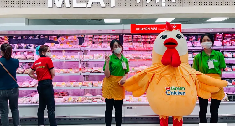 Nhân dịp khai trương siêu thị, Green Chicken đang triển khai những chương trình khuyến mãi trực tiếp tại gian hàng: