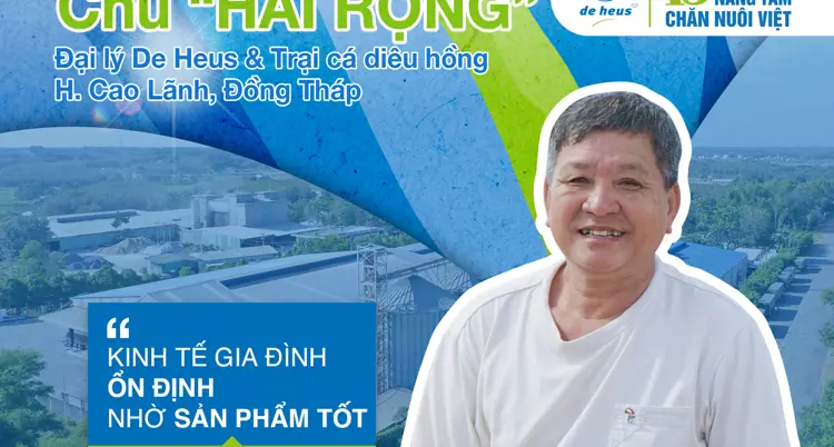 Sau 8 năm kiên trì chăn nuôi và chia sẻ kinh nghiệm đến bà con địa phương, chú “Hai Rộng" hào hứng chia sẻ: “Cá nhà ăn sản phẩm thấy ngon quá, nhập về bán luôn. Cá diêu hồng ăn cám De Heus phát triển nhanh, đồng đều, đạt được hệ số và lợi nhuận cao. Nhờ đó, kinh tế gia đình được ổn định."