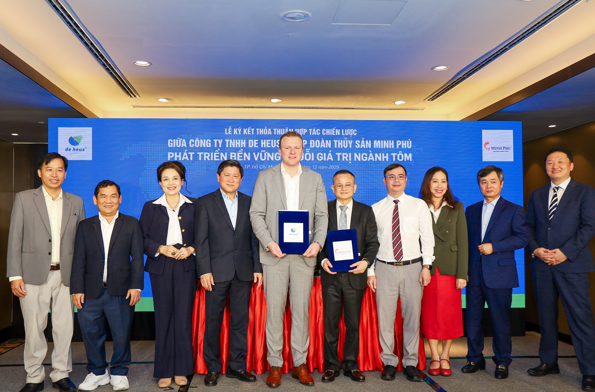 Vào ngày 18/12/2025, De Heus và Tập đoàn Thủy sản Minh Phú (Minh Phú) chính thức ký kết Thỏa thuận Hợp tác Chiến lược nhằm thúc đẩy phát triển bền vững chuỗi giá trị ngành tôm. Dự án được kỳ vọng sẽ góp phần nâng cao hiệu quả nuôi trồng thủy sản, đảm bảo đầu ra ổn định và nâng cao vị thế ngành tôm Việt Nam.