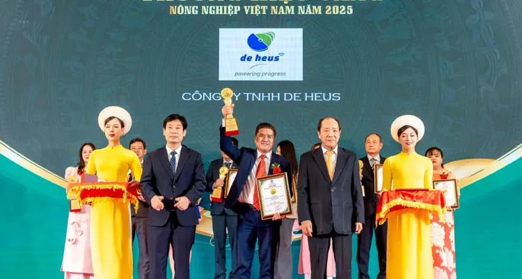 Ngày 17/10/2025, dòng sản phẩm GREEN-TOM – thức ăn chuyên dùng cho mô hình nuôi tôm tuần hoàn của De Heus đã được vinh danh nhận giải thưởng “Thương hiệu Vàng Nông nghiệp Việt Nam”. Giải thưởng là minh chứng cho nỗ lực của De Heus trong việc nâng cao chất lượng ngành thủy sản, đặc biệt là nuôi tôm thẻ chân trắng.