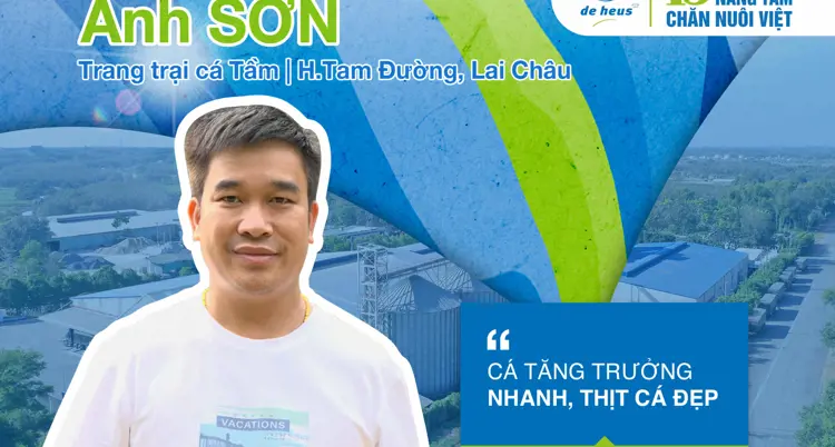 “Cá sau khi sử dụng cám De Heus có sự thay đổi về chất lượng, cá tăng trưởng nhanh, thịt cá đẹp và trọng lượng cũng tăng đáng kể. Anh em kỹ thuật hỗ trợ nhiệt tình, tạo điều kiện rất nhiều, gắn bó nhau thời gian dài, xem nhau như anh em, có vấn đề gì là đội ngũ De Heus sẵn sàng hỗ trợ ngay” - Anh Sơn bày tỏ cảm nhận sau một thời gian dài đồng hành cùng De Heus.