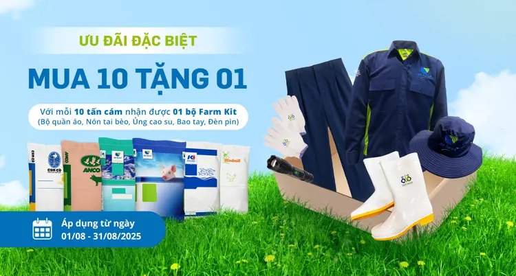 - Mua 10 tấn thức ăn chăn nuôi tặng 01 bộ quà Farm Kit.