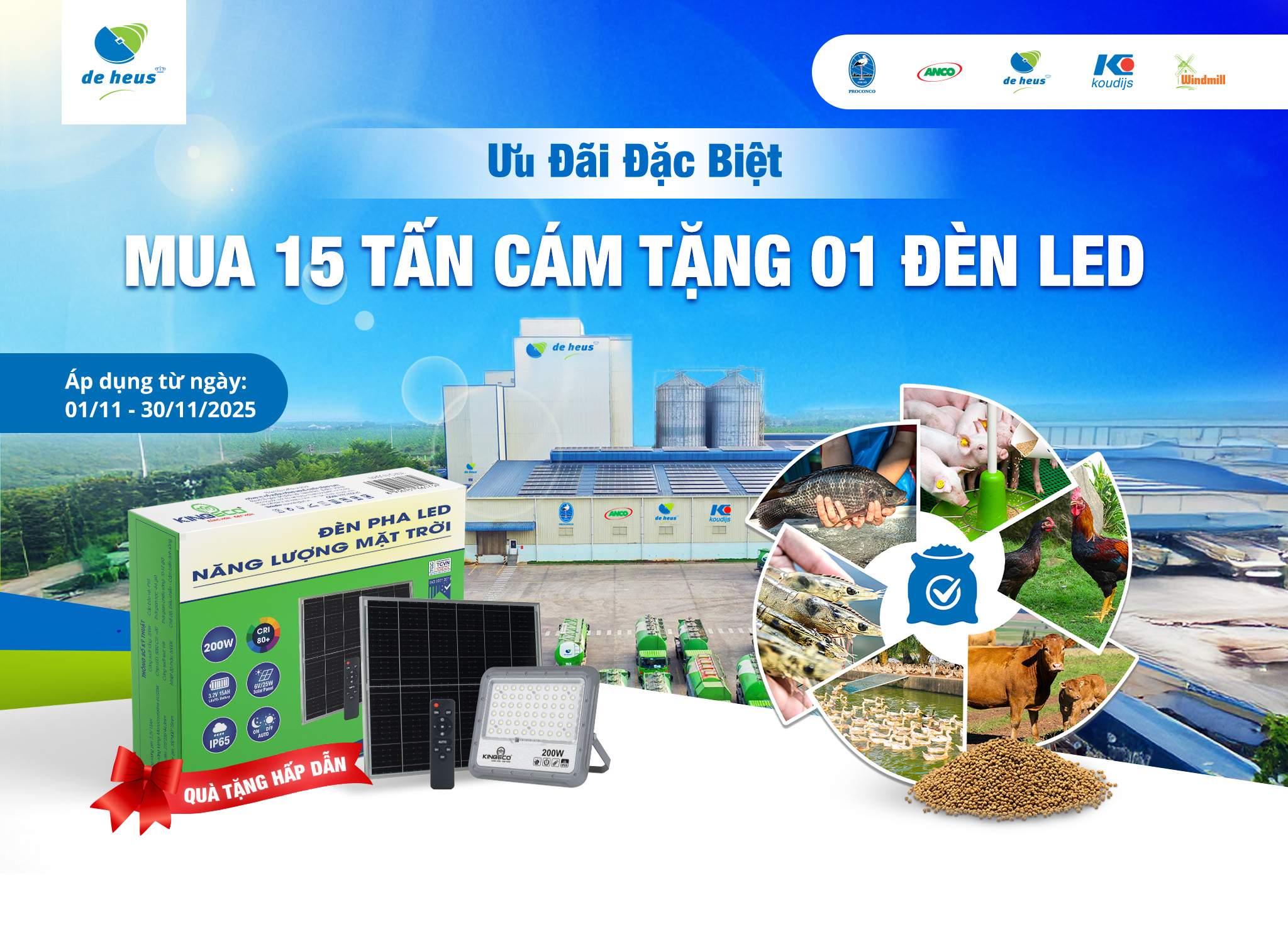 Thông tin chi tiết của chương trình được thực hiện theo Thông báo khuyến mại số: TBTHKM10/2025 (De Heus) ngày 14/10/2025, TBTHKM10/2025/PC (Proconco) ngày 15/10/2025 và các sửa đổi, bổ sung của các Thông báo này.