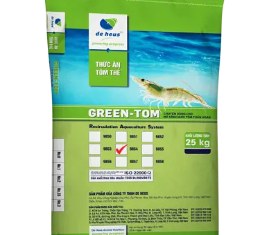 GREEN-TOM là dòng thức ăn chuyên biệt dành cho tôm thẻ chân trắng, được thiết kế tối ưu cho các mô hình nuôi nuôi tôm tuần hoàn, giúp tiết kiệm nước, kiểm soát môi trường tốt, giảm nguy cơ bệnh tật, nâng cao hiệu quả kinh tế.